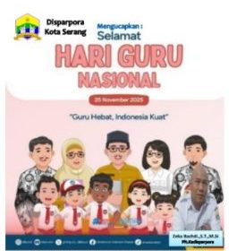 DINAS PARIWISATA,PEMUDA DAN OLAHRAGA KOTA SERANG 25 November 2025, 05:25 am Mengucapkan: "SELAMAT HARI GURU NASIONAL " 25 - November - 2025 "GURU HEBAT,INDONESIA KUAT"