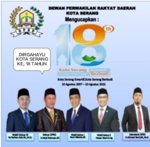 DPRD KOTA SERANG, Mengucapkan detikind | 10 Agustus 2025, 11:18 am | 0 comments | 73 views DIRGAHAYU KOTA SERANG KE, 18 TAHUN. ” Kota Serang Kreatif, Kota Serang Berbudi ” 10 Agustus 2007 – 10 Agustus 2025