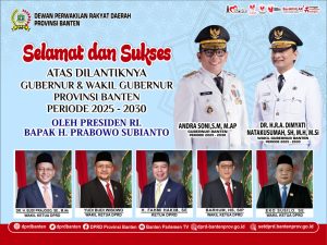 DPRD PROVINSI BANTEN,MENGUCAPKAN: ” SELAMAT DAN SUKSES ATAS DILANTIKNYA “, Gubernur dan Wakil Gubernur Banten 2025 – 2030 20 Februari 2025, 10:31 am